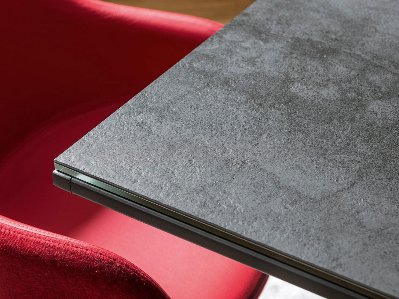 Tavolo a quattro gambe in acciaio verniciato disponibile in diverse misure. Top in cristalceramica o legno massello.